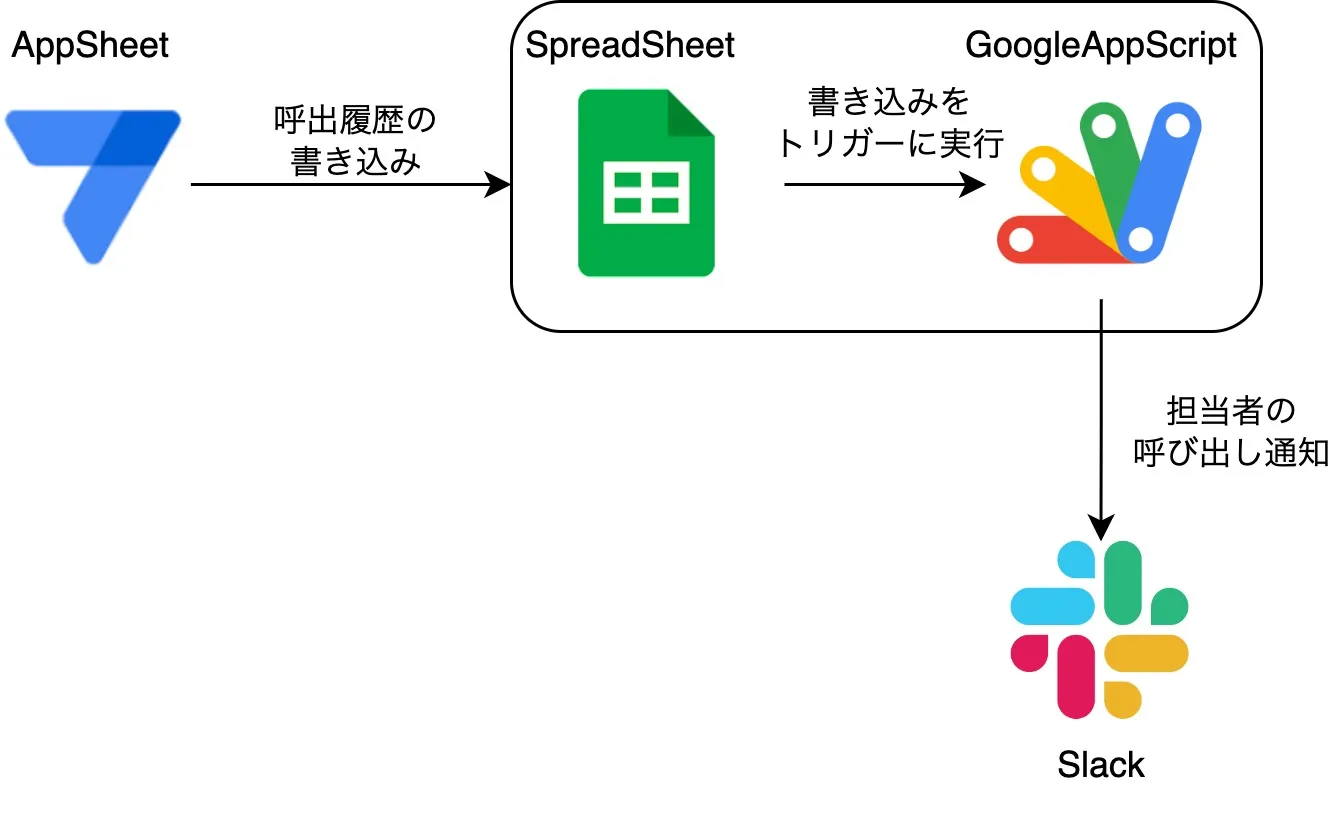 という要件から、AppSheet と Google App Script(以降 GAS)で実装することを決めました。