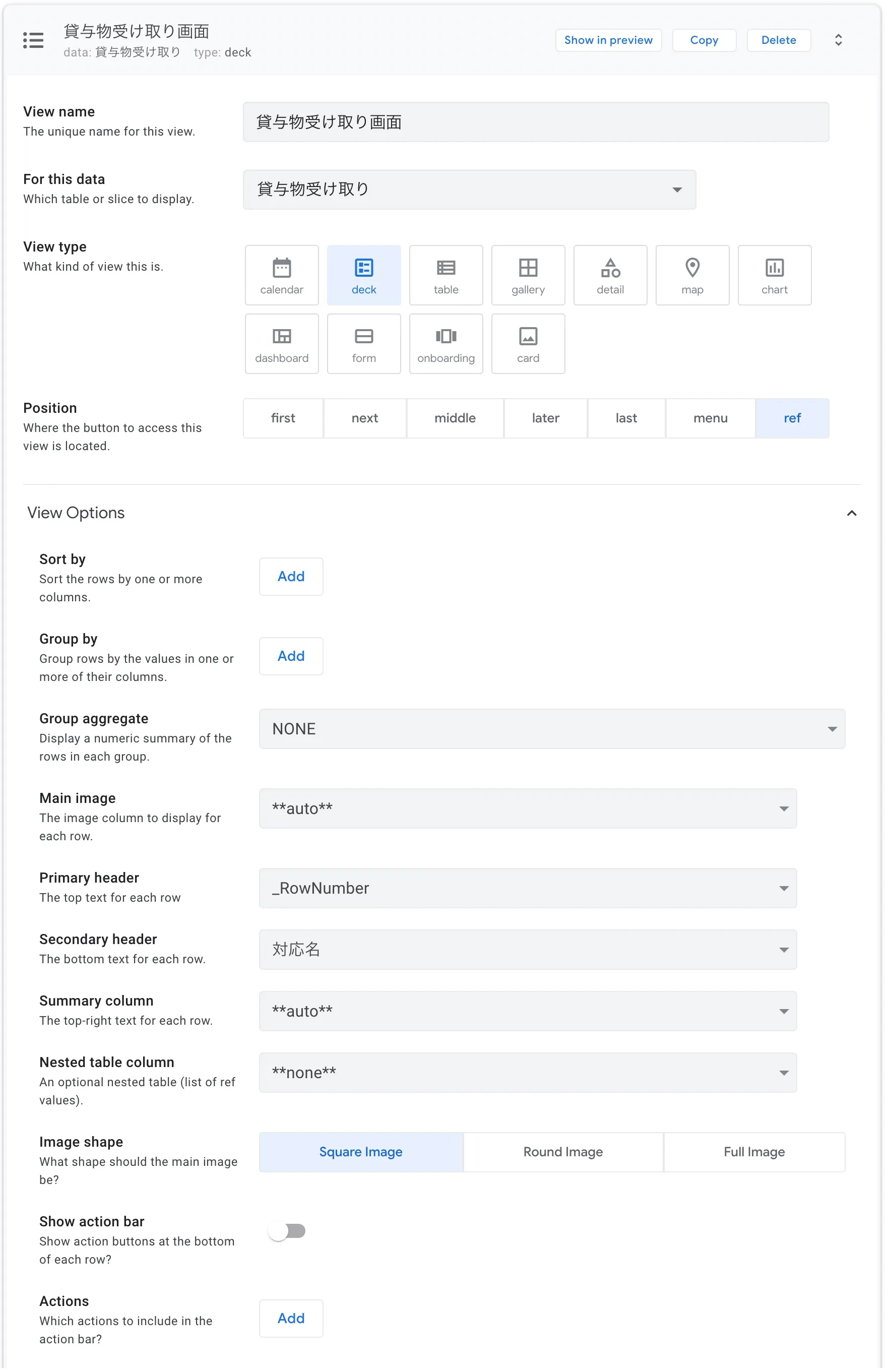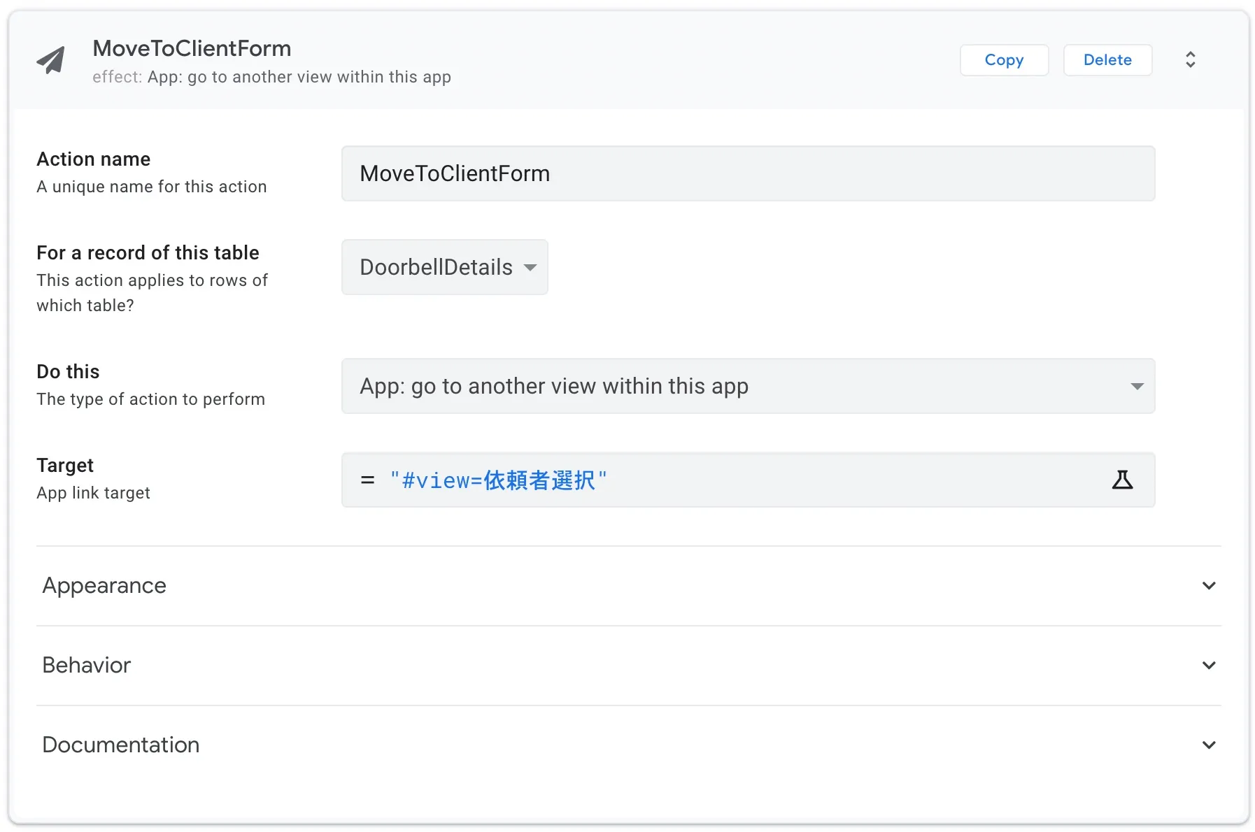 AppSheet の設定