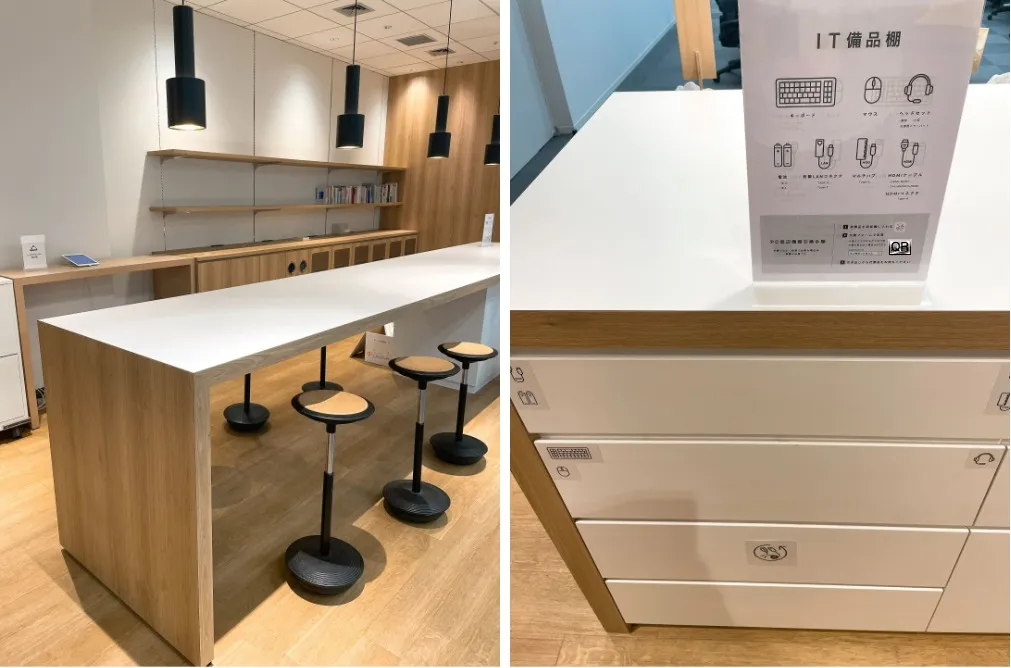 ちなみに、カウンターはこんな感じのスペースで、従業員の方がセルフサービスで IT 備品交換を行えるブースもあります。