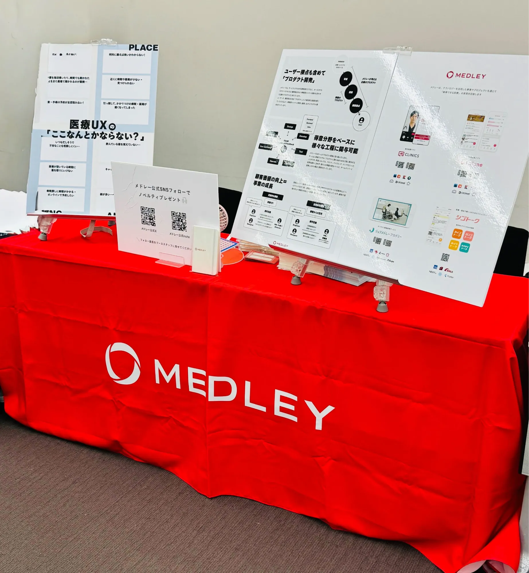 メドレーブースでは、メドレーが展開するアプリの紹介と、アンケートパネルを用いて参加者の方々に医療体験に関するお悩みを伺いました。 特に課題として多かったは以下の 3 つ