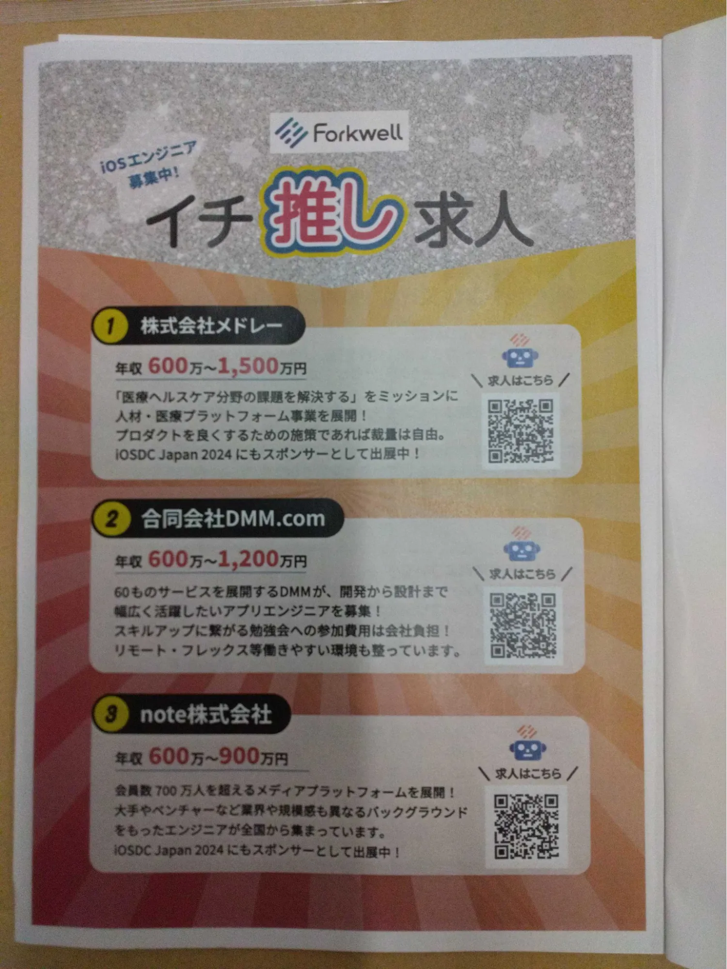 会場で配布していた資料に、イチ推し求人としてメドレーの求人情報を掲載していただいていました!いつもお世話になっております!
