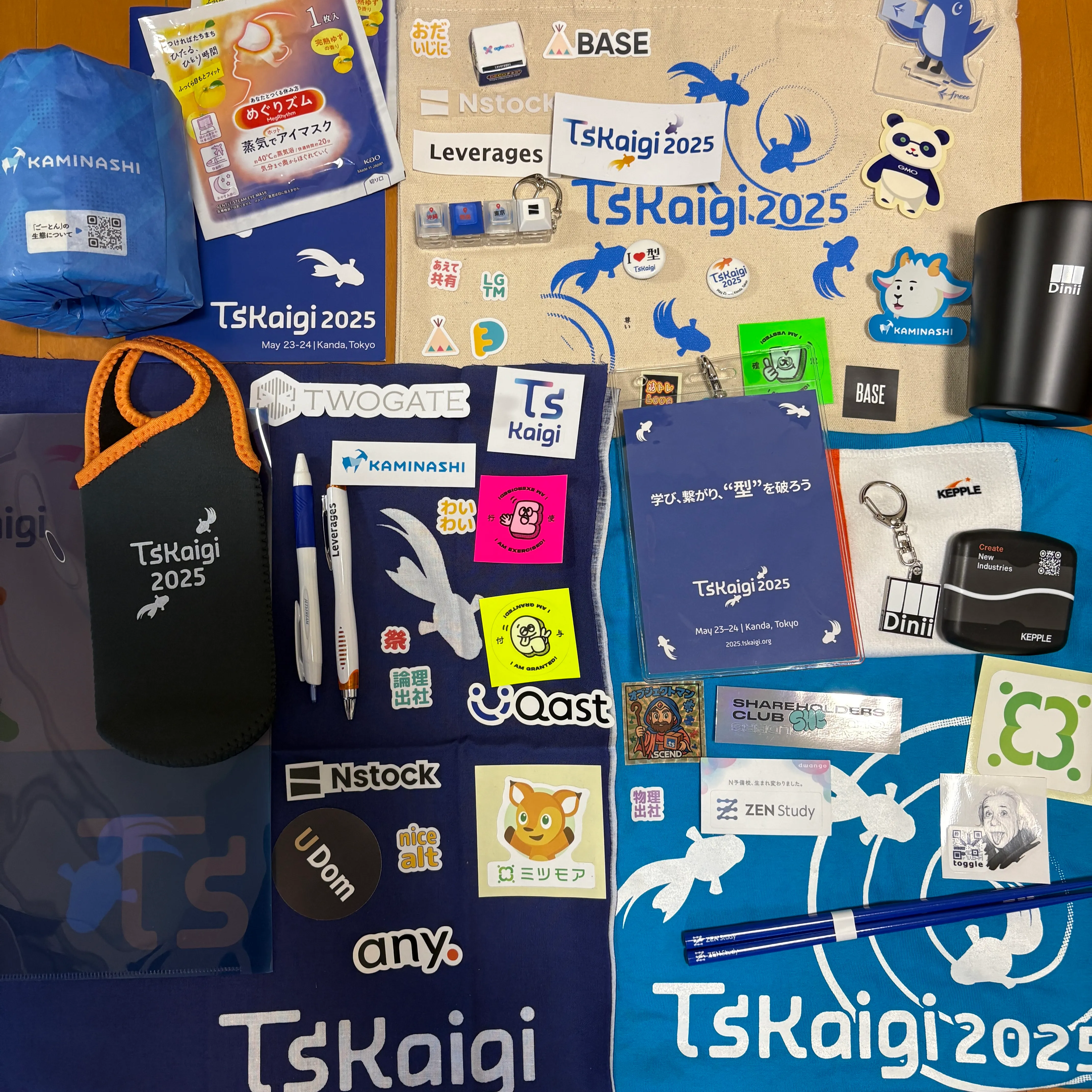また、今回参加者に配布された公式グッズは、TSKaigi のオリジナル T シャツやトートバッグに加え、各企業が工夫を凝らした遊び心あふれるグッズで盛りだくさんでした。